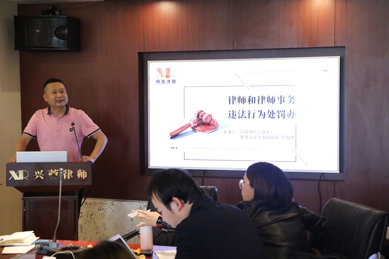 3月25日,四川兴蓉律师事务所开展了“律师和律师事务所违法行为处罚办法”集中学习活动,学习教育活动由兴蓉律所合伙人、刑事法律事务部部长邓再勇为律师们普法,生动讲述自己从业多年遇到的各种律师违法违规现象,呼吁律师们高度重视《律师和律师事务所违法行为处罚办法》,遵守相关法律,珍惜执业资格,防范执业风险,维护正常的法律服务秩序。
