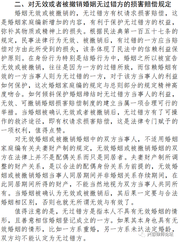 二、对无效或者被撤销婚姻无过错方的损害赔偿规定