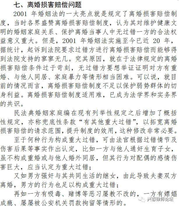 七、离婚损害赔偿问题