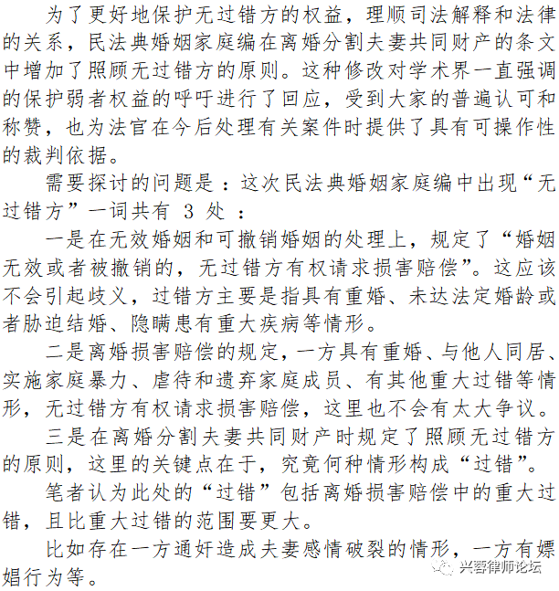 六、离婚分割夫妻共同财产照顾无过错一方的问题